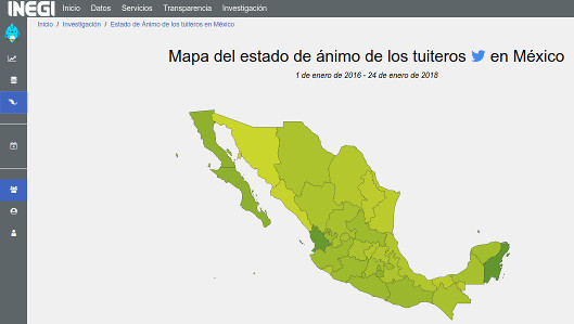 El Instituto Nacional de Estadística y Geografía (Inegi) analiza a diario desde el 2016 el estado de ánimo de los tuiteros mexicanos. A través de herramientas de machine learning y bi...