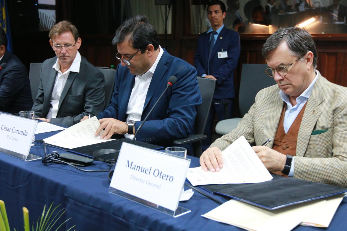 El Director General del Instituto Interamericano de Cooperación para la Agricultura (IICA), Manuel Otero, y el Presidente de Microsoft Latinoamérica y Vicepresidente Corporativo de esta misma c...