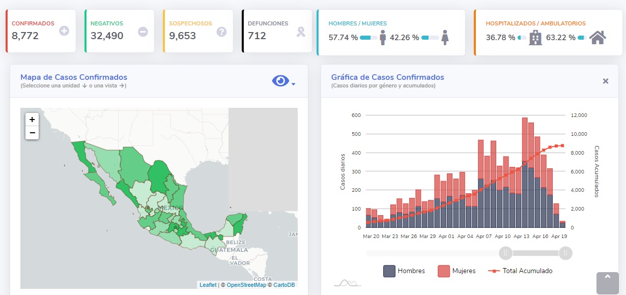 Según datos generales del gobierno de México, los cuales encuentran disponibles en el portal digital de información de Covid-19